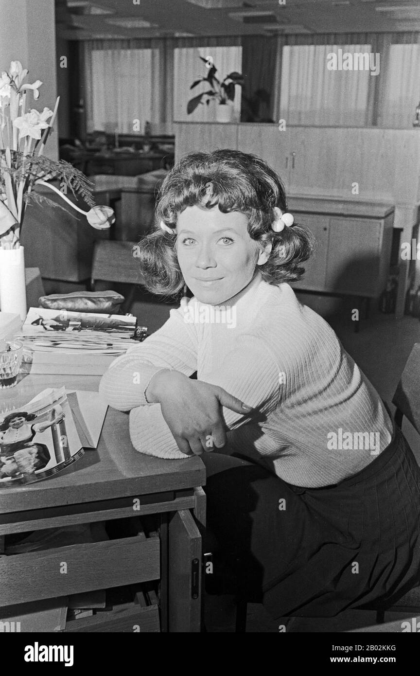 Lotti Krekel, deutsche Schauspielerin und Sängerin, zu Besuch in einem Redaktionsbüro in Hamburg