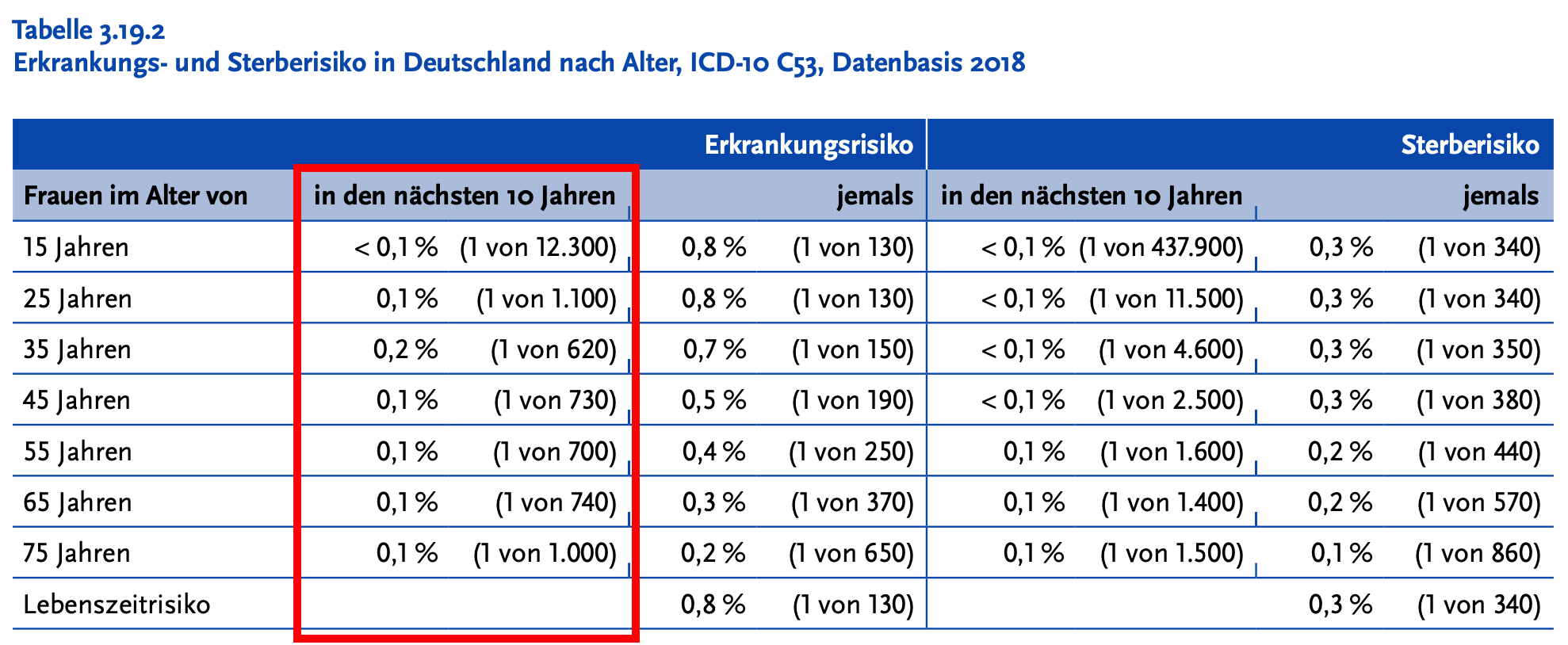 HPV-Impfung bei > 17-Jährigen und nach Konisation. Seit Januar 2020 gibt es Neuerungen in der Früherkennung des Zervixkarzinoms für gesetztlich versicherte Frauen: Der jährliche Pap-Abstrich wird bei Frauen zwischen 20 und 34 Jahren weiterhin durchgeführt. Für Frauen ab 35 Jahren wird alle drei Jahre eine Kombinationsuntersuchung.