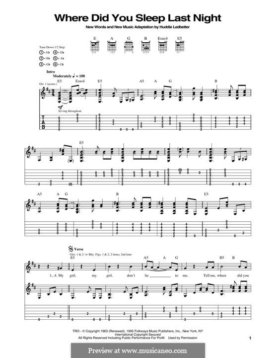 Where Did You Sleep Last Night? Sheet Music