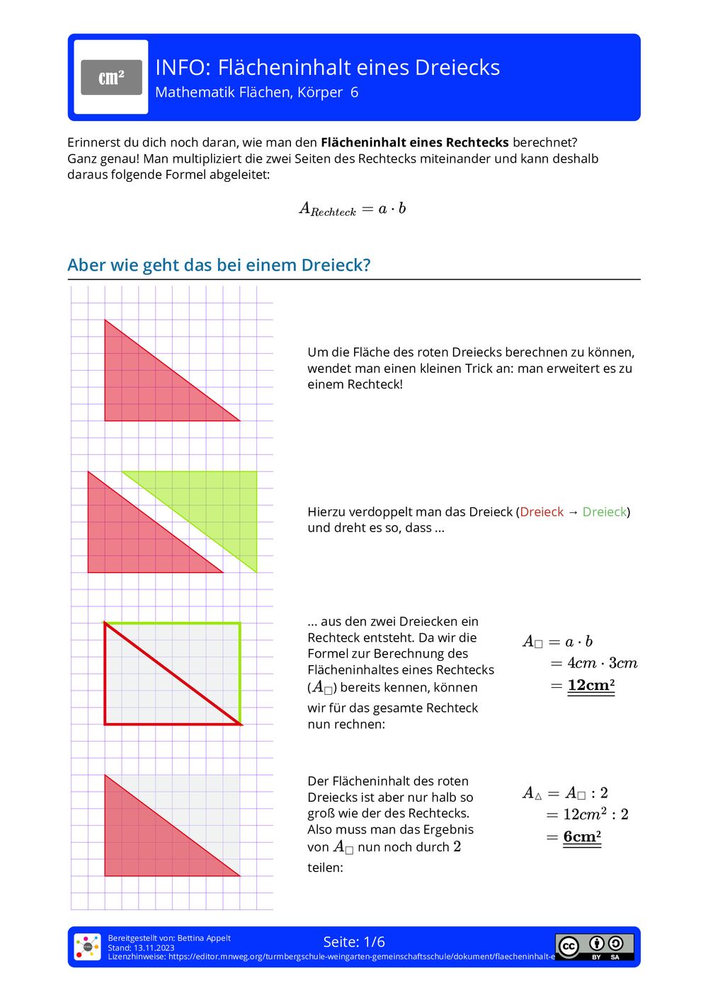 Arbeitsblatt Flächeninhalt eines Dreiecks Mathematik Flächen & Körper